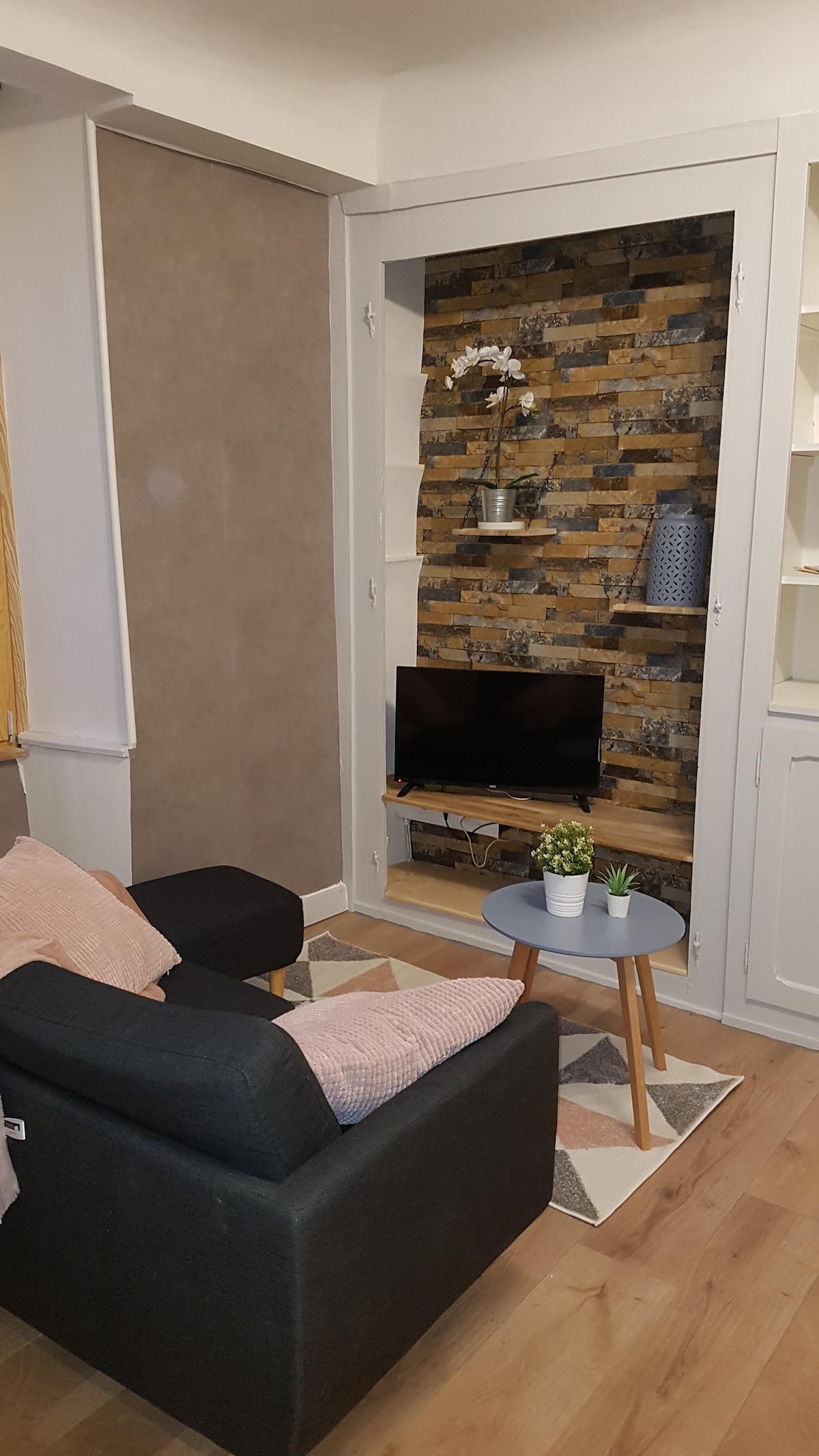 Bel appartement de 60m² refait à neuf avec pierres apparentes et cheminées du XVIème. Convivial, chaleureux et contemporain à la fois avec tout le confort moderne. Vous y trouverez : cuisine équipée ouverte sur un salon confortable et spacieux avec TV et Wifi. Chambre séparée avec 1 lit de 160, salle de douche avec sèche serviette. Entrée, parking et terrasse privatifs. Bois fournis.