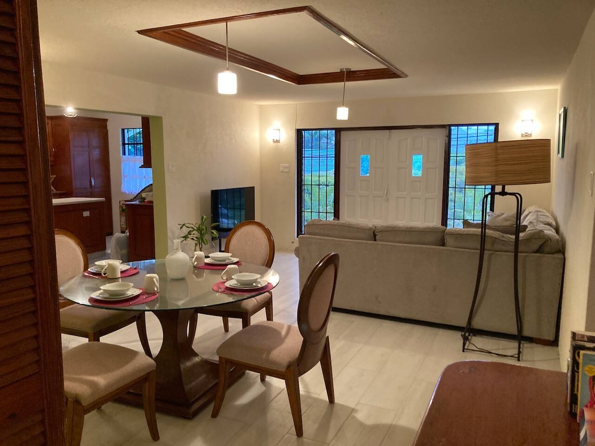 Our home is a stylish, modern bungalow with a breezy back patio, and a/c in each bedroom. Ideally located for those on business trips, it is in a safe suburban neighbourhood, close to a busy highway and commercial hub with supermarkets, petrol/gas stations, coffee shops, restaurants and banks. Happily, a short drive will get you to some of the island's loveliest beaches, as well as the beautiful Sandy Lane golf course and the Cave Hill campus of the University of the West Indies.