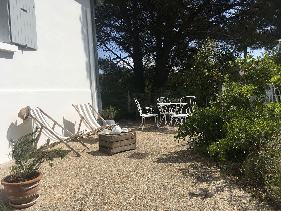 Logement de caractère, décoration soignée. 1 grande chambre pour 2 personnes, douche à l'italienne, wc séparés Séjour avec canapé-lit confortable donnant sur terrasse et jardinet privatif, sans vis à vis, , équipé d'un salon de jardin, parasol, transats et barbecue. Coin cuisine entièrement équipé, lave-vaisselle.