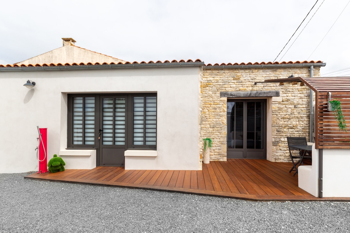 BIENVENUE À L' IØDE ET MERVEILLES!!! Maison neuve climatisée de 50m2 très confortable située au coeur du Château d'Oléron aux pieds des remparts. Idéalement située : - moins de 10min à pied du marché et des commerces - moins de 10min à pied des plages - à 100 mètres d'un supermarché - à 15 min à pied du port et de ses incontournables cabanes ostréicoles reconverties en atelier d'artistes - à 15 min à pied de la Citadelle d'Alienor d'Aquitaine - au pied des pistes cyclables.