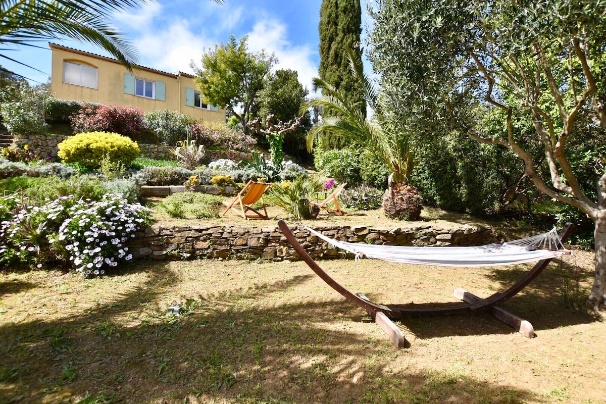 My home is located on the ground floor of a beautiful Provencal villa, with covered terrace and private garden, including 2 large bedrooms, a bathroom, a large living room and kitchen opening onto a sheltered terrace. It is located at Croix Valmer, in the Gulf of St Tropez, 800m from the village and the Place du Marché Provençal. 15 minutes walk from the landing beach and 10 minutes drive from Gigaro and the famous coastal path of Cap Lardier.