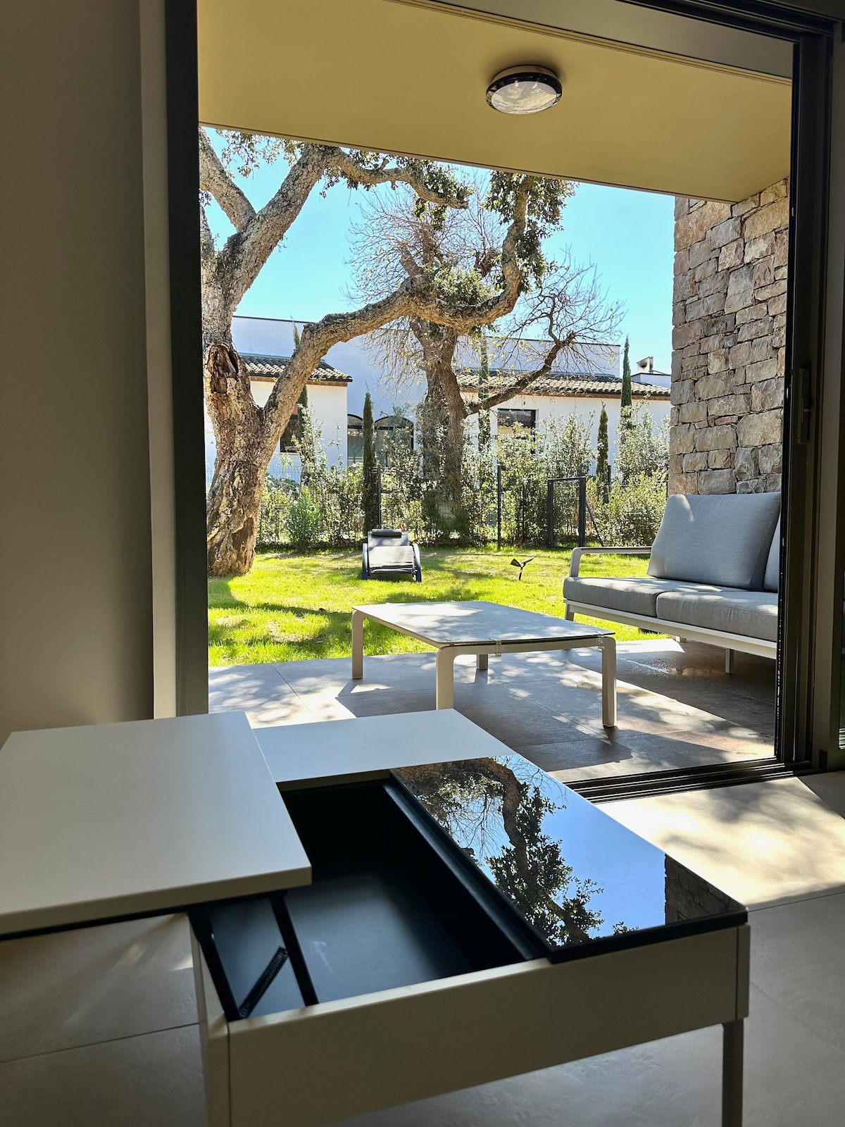 Ce studio comprend une belle terrasse lumineuse de quoi profiter de déjeuner ou dîner en extérieur durant votre séjour dans ce beau village tropézien. Le lit en estrade vous permettra de profiter d'un matelas type "Queen Size" pour faire de jolis rêves de Saint Tropez.