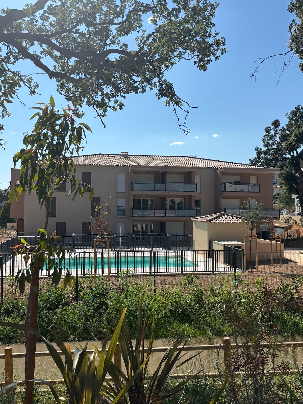 Located 1.6 km from the city center, the fully equipped T2 has a private enclosed garden, a parking space on the property and an exclusive access to the swimming pool from the beginning of May to the end of September. Quiet and surrounded by olive trees, you will find all the shops and supermarkets in town. Summer festivities. Animals are welcome. Baby equipment and free provision of bicycles. Warm and caring welcome. Do not hesitate to contact us