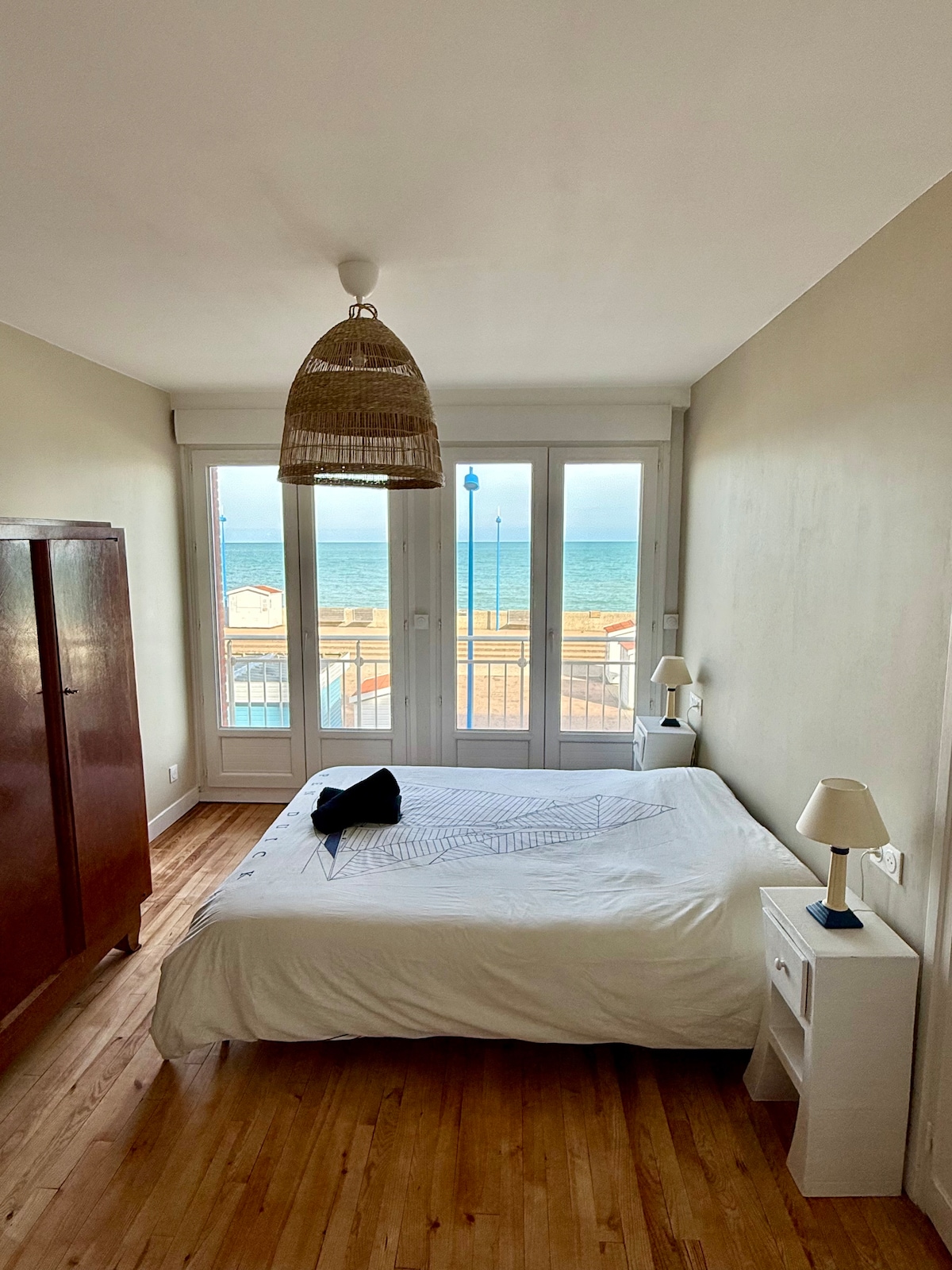 Bel appartement 3* de 57 m², non-fumeur, situé sur le front de mer au 4ème étage sans ascenseur, bénéficie d'une vue magnifique sur la mer. A proximité de la plage, du centre ville, des étals de pêcheurs où vous pourrez acheter le poisson fraichement débarqué des bateaux. Marché vendredi et dimanche en saison. Il dispose d'une cuisine équipée (induction, four, micro-ondes,Senseo, lave-vaisselle) séjour (Wifi/fibre, télé). 3 lits : 1x140 et 2lits simples draps et linge de toilette fournis.