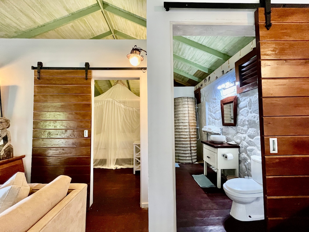 No air conditioning Private, spacious stone villa Jalousie windows 4 post king bed Excellent WIFI Fine art & furnishings Landscaped gardens Great views Hike: Bush Bar 10 mins Dewi’s Asian Kitchen 10 mins Vermont Trail, 'Vincy' parrot Table Rock, Moonmarket, Three Ponds Waterfalls 1-2 hrs Hills above Bush Bar Drive: Superb snorkelling sites 30mins. Provided: Soap, handmade with coconut oil and no fragrance Salt, pepper Coffee Cafetiere/French press Towels