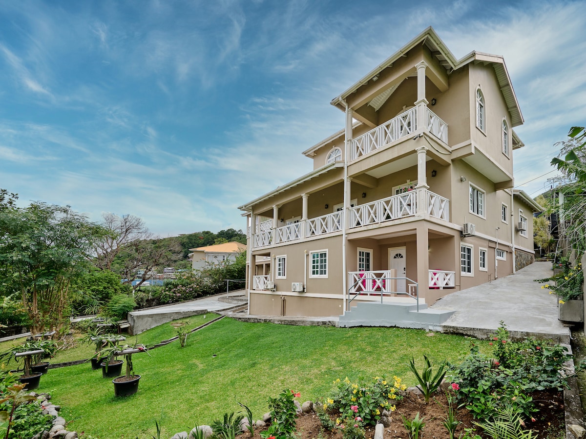 Premium accomodation at no additional $. FREE SHUTTLE SERVICE TO AND FROM AIRPORT WITH MINIMUM OF 7 DAY STAY AND NON DISCOUNTED RATE. Free washer and dryer. Want to hike a volano? No problem. Want to visit a rain forest? No problem. Want a chef to prepare a meal for you? No Problem we can help arrange for you Deck has best Views in St Vincent, breathtaking! THE BEACH IS A COUPLE MINUTE WALK NEW!! WE NOW OFFER A MINI SPA ONSITE. Book your mani or pedi. Close to dining, shopping, nightlife.