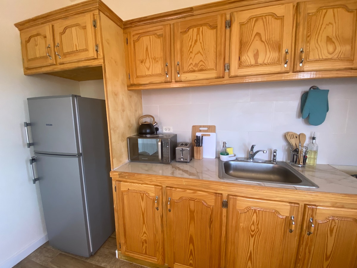 Discover Dana’s Perch, a peaceful hillside studio in Fountain, St. Vincent (Belair Spa Road) with stunning sea and mountain views. Ideal for solo travellers or couples, it features a cozy bed, full kitchen, private bath, and smart design. Enjoy access to a scenic rooftop space perfect for relaxing. Nestled on a steep incline, this modern hideaway blends comfort, privacy, and island charm, perfect for a short stay or creative escape.