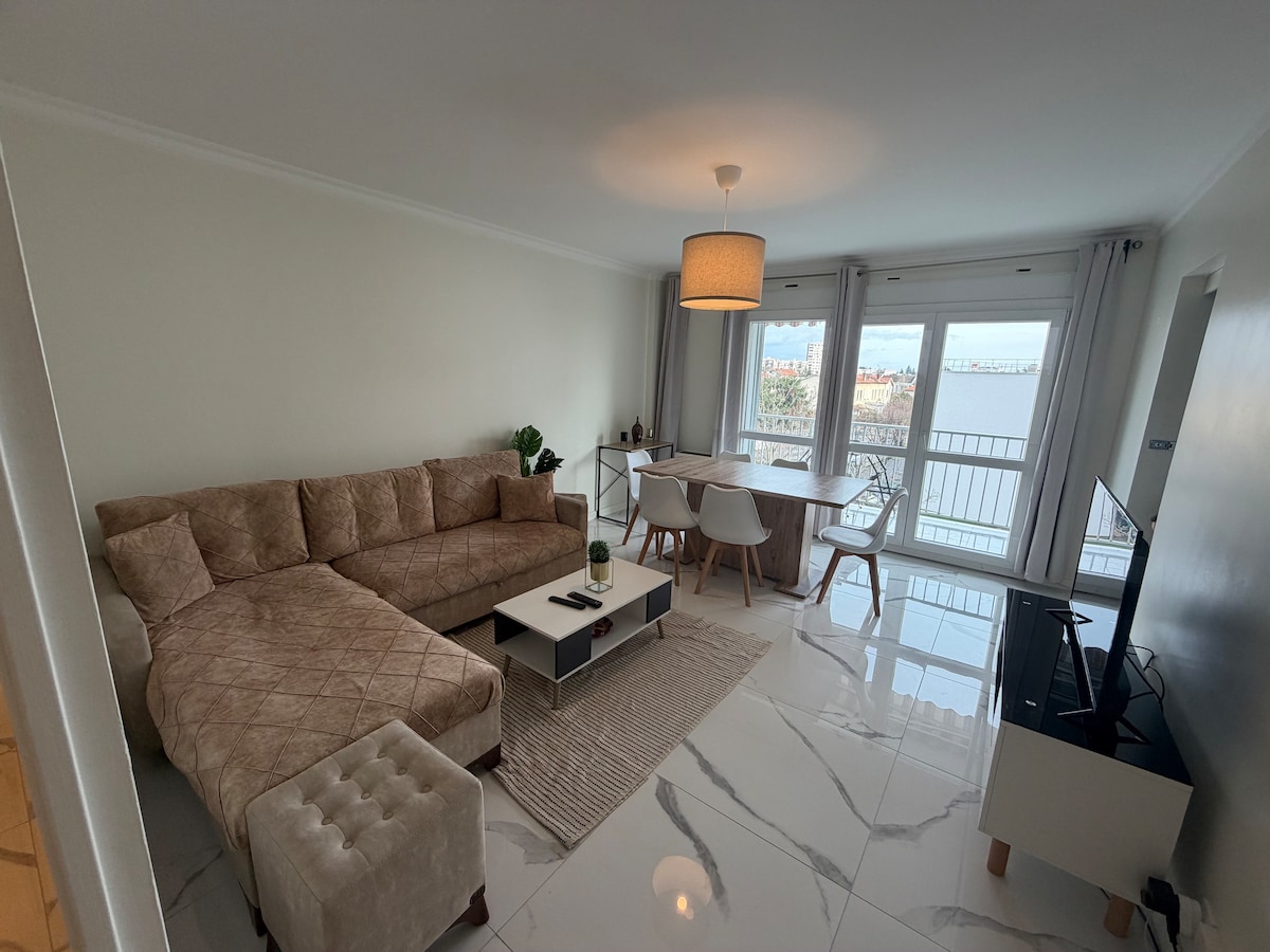 Appartement moderne T3 de 63m² dans un immeuble récent (2016), idéalement situé à 150m du métro Mermoz (ligne D, 15 min de Bellecour) et du Tram T6 reliant directement Confluence. Dispose de 2 chambres : une avec un lit king size, l'autre avec 2 lits simples modulables et un bureau. Cuisine ouverte sur salon, grande terrasse et toilettes séparées. À proximité immédiate : Galeries Lafayette, Intermarché, Vie Claire. Le Parc de Parilly, à 300m, est parfait pour se détendre ou faire du sport.