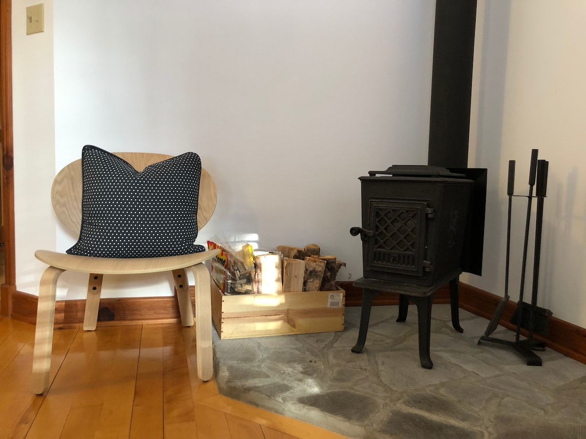 Cozy 2BDR chalet, wood fireplace,lake access,sauna