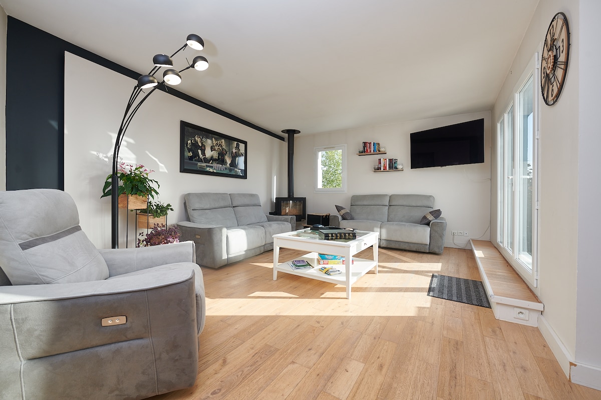 Superbe maison normande de 185 m² avec beau jardin et terrasse ensoleillée en bord de mer. Cette villa est entièrement équipée pour passer un séjour de grand confort au porte de Honfleur. La magnifique cheminée centrale est un vrai atout l'hiver pour passer des moment chaleureux et conviviaux Accès plage à seulement 100 mètres. - parking privé - plage à proximité Frais de ménage obligatoire de 200 euros à régler à votre arrivée (comprend aussi les draps et serviettes)