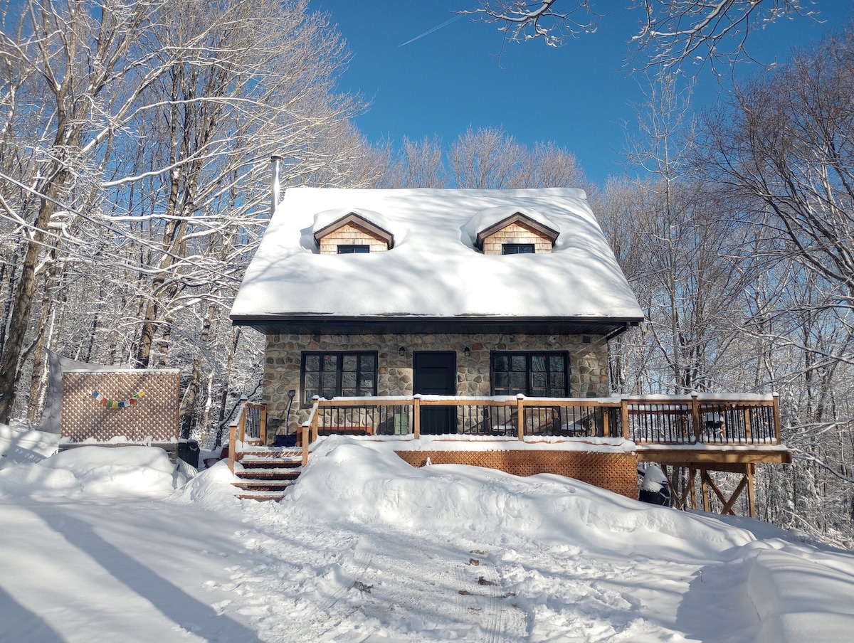 Unique haven of peace with breathtaking views! Located on a huge 100-acre estate with no nearby neighbors! Peace and tranquility guaranteed. Dogs accepted on condition until June 15. Dogs not allowed in high season. Cross-country skiing, snowshoeing and hiking trails on the doorstep. Spa with breathtaking views! In winter, a 4x4 vehicle is required to drive up the road to the chalet. THERE ARE CAMERAS ON THE PROPERTY Dogs welcome before June 15th + fees (no dogs in pick season). CITQ #30336