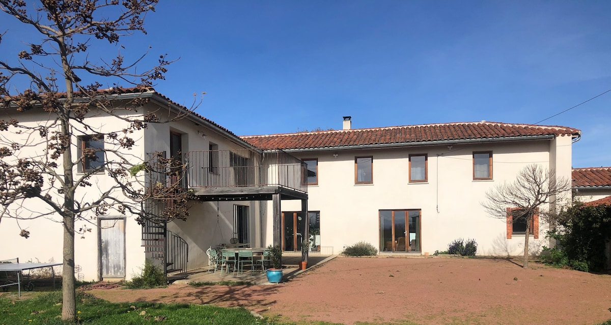 Nous serons ravis de vous accueillir dans notre appartement de 50m2 au cœur des monts du Lyonnais sur les hauteurs de notre petit village situé entre Lyon et Saint Etienne. A 15 kms de l'autoroute A89. Totalement indépendant, vous pourrez garer votre voiture à proximité de l'appartement, dans une Cour Sécurisée et Fermée. A moins de 500m, vous pourrez profiter de notre restaurant, épicerie-dépôt de pain, bureau de tabac. Petit marché le mercredi matin. NOUVEAU : distributeur de pizza