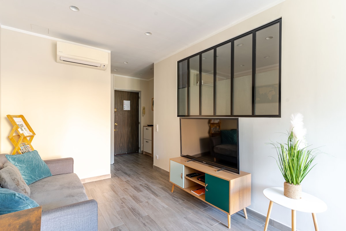 Coquet 2 pièces classé 3 ⭐️ avec une superbe vue mer et le Rocher de Monaco. Parking gratuit. Accès à la plage (10mn à pied). L'appartement est équipé de: Clim, WIFI, TV, Netflix, Nespresso, lave-vaisselle, plaques de cuisson, four, lave-linge, sèche-cheveux, fer et planche à repasser, linge La chambre est dotée d'un lit très confortable de 160x200. Dans le salon, le canapé-lit peut accueillir 2 personnes. Proximité immédiate aux commodités (bus Monaco et France, superette, hôpital...).