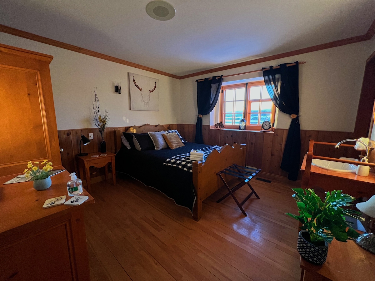Les magasins et les restaurants populaires sont tout près de ce logement enchanteur. Située près de la ville de Québec et à l'entrée de Charlevoix, entre le Fleuve St-Laurent et le Mont-Ste-Anne. Chambre champêtre avec 1 lit queen, foyer, wi-fi et stationnement gratuit, réfrigérateur, cafetière , coin repas, salle de bain privée, etc...