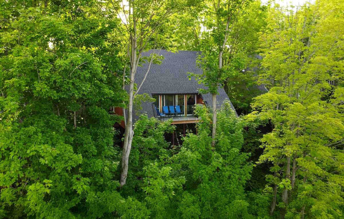 Welcome to the Tree-House♥ Located in Beaupré, Le Tree-House will be your cozy little nest hidden in the vegetation and warmed by the sun. Come relax in the clouds with us! ➳ Maximum of 8 adults per stay, the other 2 travellers must be children ➳ 4 minutes to Mont Ste-Anne ➳ Suspended in the air, among the birds ➳ Fully equipped workstation for the ones that work hard ➳ Indoor wood fireplace to warm you in winter ➳ Outdoor corner with BBQ ➳ Sauna and pool accessible for guests of all ages!
