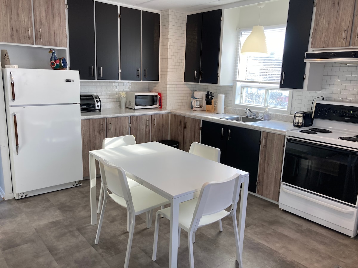 Logement propre, bien isolé du bruit, tranquille vs la 132. Situé au centre de Sainte-anne-des-monts, base de plein air pour les sentiers de l'arrière pays, notamment au parc de la Gaspésie. Possibilité de 2 lits accueillant jusqu'à 4 personnes. INCLUANT: Logement privé muni d'un stationnement, entrée et salle de bain privée. Cours arrière avec table à manger, espace de bureau, table a café, coutellerie, micro-onde, frigidaire, bouilloire, machine à café, 2xTV. EXCLUANT: Cuisine fonctionnelle