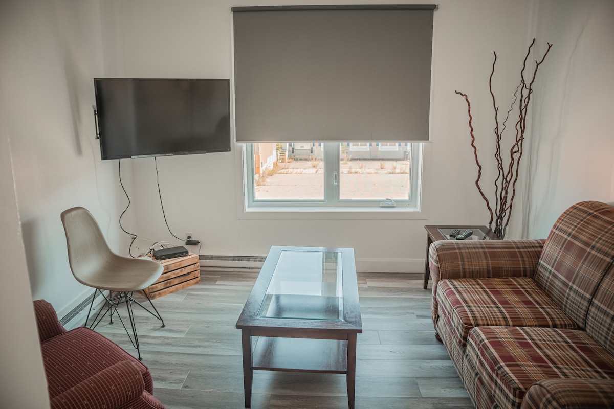Logement propre, bien isolé du bruit, tranquille vs la 132. Situé au centre de Sainte-anne-des-monts, base de plein air pour les sentiers de l'arrière pays, notamment au parc de la Gaspésie. Possibilité de 2 lits accueillant jusqu'à 4 personnes. INCLUANT: Logement privé muni d'un stationnement, entrée et salle de bain privée. Cours arrière avec table à manger, espace de bureau, table a café, coutellerie, micro-onde, frigidaire, bouilloire, machine à café, 2xTV. EXCLUANT: Cuisine fonctionnelle