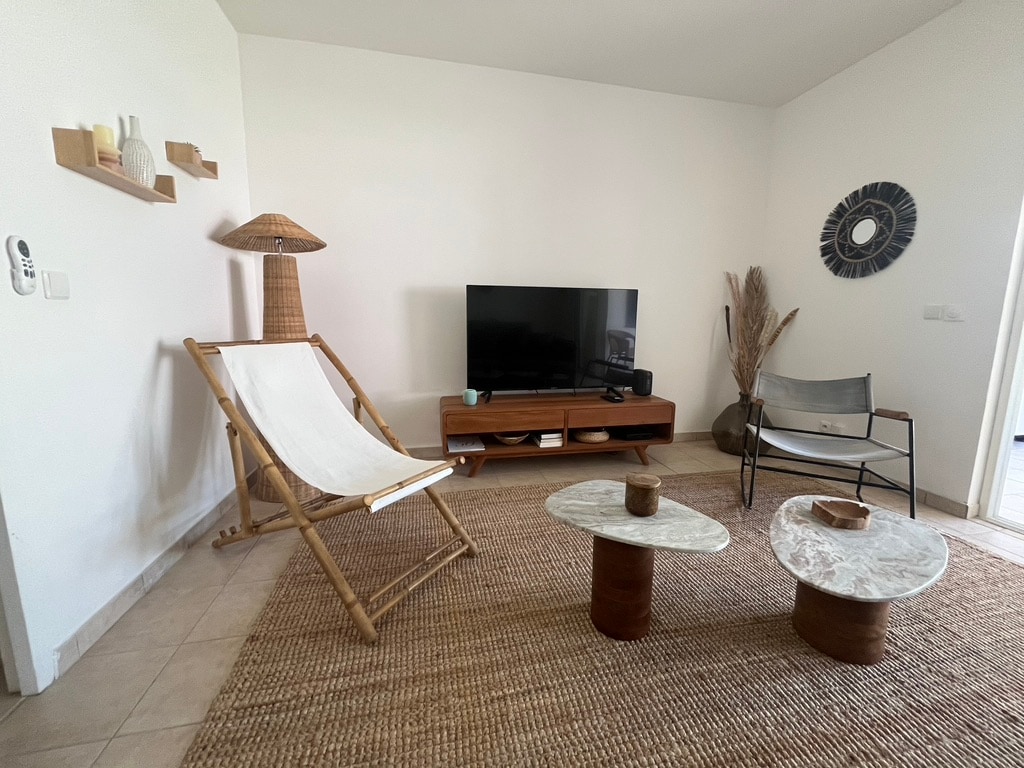 Superbe appartement de 50m2 dans une résidence calme et sécurisée à 5min à pieds de Sainte-Anne de ses commerces, 7min du spot de Kite et surtout un accès direct au lagon Ce logement comprend une chambre climatisée, une salle de bain, cuisine équipée, un WC séparé, un séjour et une belle terrasse pour des moments de détente face à Marie Galante. Appartement bien ventilé avec du mobilier de qualité pour faire de votre séjour une parenthèse inoubliable dans un cadre idyllique !