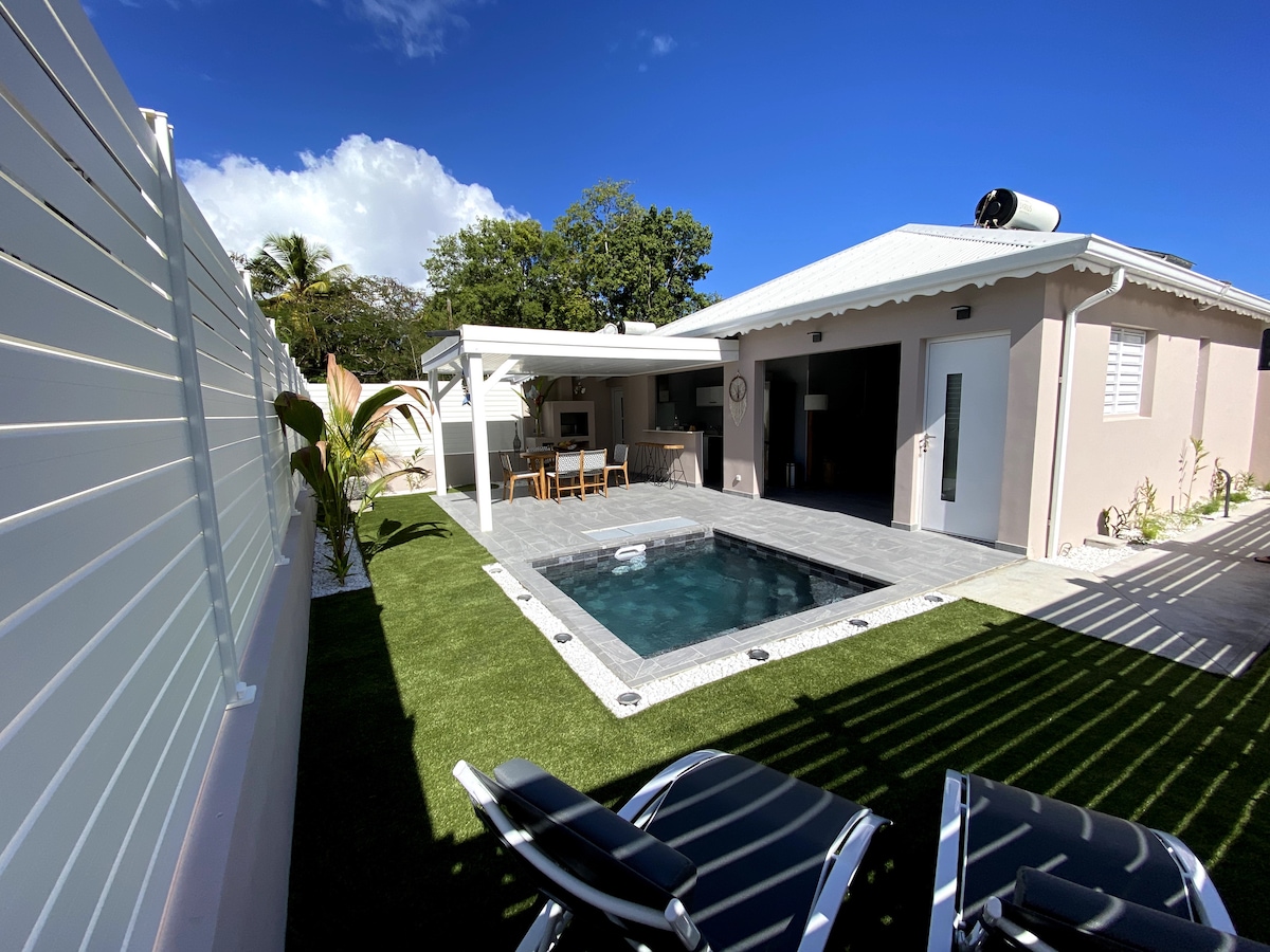 La villa Sabana se situe à St François, à 5 mn du centre ville et des plages de St François. La villa de 54 m2, propose un hébergement avec une grande terrasse et une piscine privée , uniquement pour vous (entretenue par un professionnel) et sans vis-a-vis. Vous disposez d’un salon, d’une salle à manger et d’une cuisine entièrement équipée. Connexion wifi gratuite. Coffre fort. Cuve d'eau douce. Produits d’ entretien à disposition. Pas de visites acceptées.