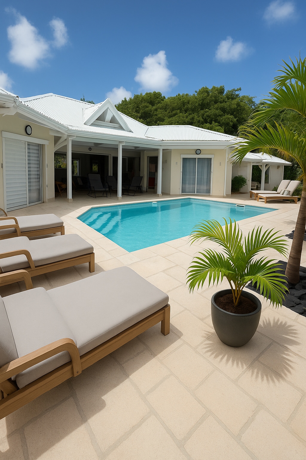 La villa 3 anses est une belle villa créole de 200m2 avec piscine et vue mer panoramique, sur un terrain arboré de 2000m2 clôturé et accès direct à des anses via le sentier du littoral. Située à 5 min de la caravelle (très belle plage et meilleur spot de kitesurf/windsurf) et 10 min de Sainte-Anne avec toutes les commodités. La villa peu accueillir 8 à 9 personnes : 3 chambres climatisées avec SbB 1 canapé lit dans le salon Draps et serviettes inclus. Frais de service pour le ménage. WiFi