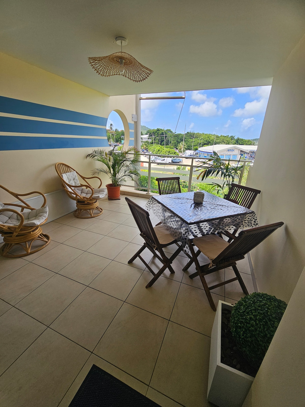 Appartement de 65 m² idéalement situé, très bien ventilé au 1er étage d'une villa entièrement rénové avec entrée indépendante sur jardinet privatif, très bien équipé avec une grande terrasse de 18 m² dans un quartier résidentiel très calme. Le centre de sainte Anne et de ces commerces et restaurants à 4 minutes à pied et 5 minutes pour la très belle plage de pointe marin. Lieu choisi par le Club Med !