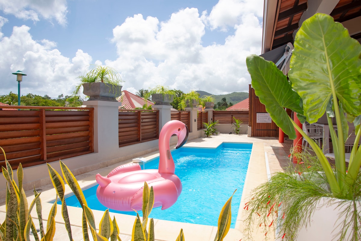 Situé à proximité du bourg de Sainte- Anne, au Sud Caraïbes de la Martinique, dans un quartier calme, vous pourrez accéder facilement et rapidement aux plus belles plages de l'île. Breen Lodge est composé de 3 logements (T2, T3, et T4) l’espace piscine est partagé entre ceux-ci Venez vous détendre en famille ou entre amis, grâce à ce logement chic pouvant accueillir jusqu'à 6 personnes, et bénéficiez de sa terrasse privative. Au plaisir de vous recevoir 🌴☀️