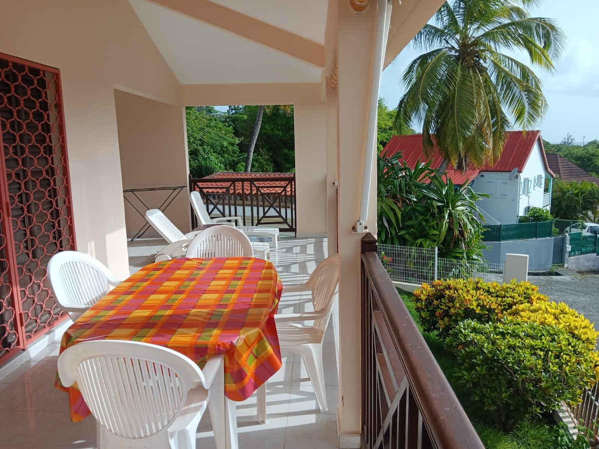 Welcome to your vacation studio, in the heart of a small leafy property just a few steps away from Pointe Marin beach. Freshly refurbished with a natural ambiance, this apartment is perfect for travelers in search of disconnection. For total independence, it has a fully equipped kitchen and a washing machine. Finally, its wooden terrace is ideal for meals to birdsong or to enjoy a cocktail after an exhausting day at the beach.