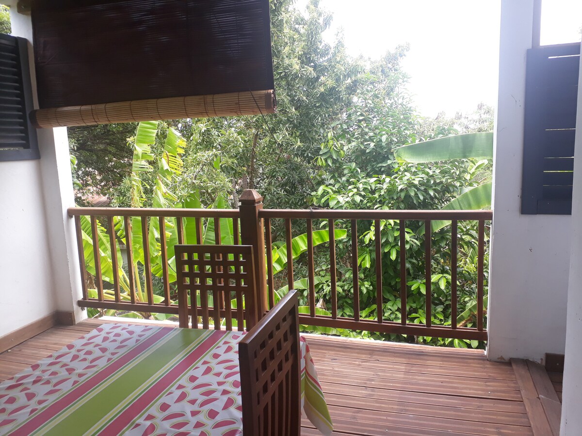 Charming modern independant airconditioned apartment (322 sq ft), owner's villa ground floor, waterside wooden terrace (160sq ft). This unique place offers a superb view over the anchorage of Grande anse d'Arlet and a direct and free access to our private dock and to the sea. 3 minutes walk from the quiet beach of Grande anse along our private lane.