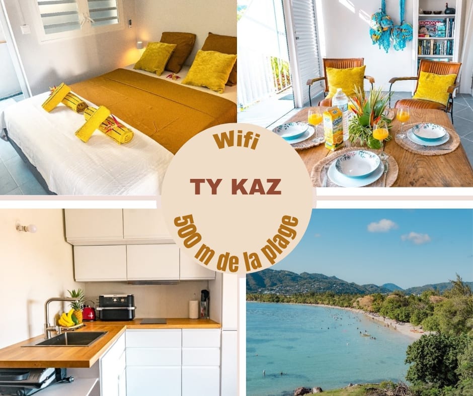 Welcome to your vacation studio, in the heart of a small leafy property just a few steps away from Pointe Marin beach. Freshly refurbished with a natural ambiance, this apartment is perfect for travelers in search of disconnection. For total independence, it has a fully equipped kitchen and a washing machine. Finally, its wooden terrace is ideal for meals to birdsong or to enjoy a cocktail after an exhausting day at the beach.