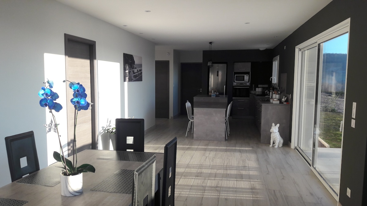 A la campagne, villa neuve complète de 70m² avec accès indépendant et 100% réservée à l'accueil Airbnb, avec sa terrasse, sa piscine 4.6m*1.4m (100% privée non partagée) utilisable de Juin à Septembre, billard américain, jeux de société, 2 TV avec tous les bouquets Canal+, Paramount+, Eurosport, Beinsport, barbecue, transat, etc... Idéalement située sur le chemin de Compostelle, à 20 mn du Palais idéal du facteur Cheval et 30 mn de St Antoine l'Abbaye (village préféré des Français)