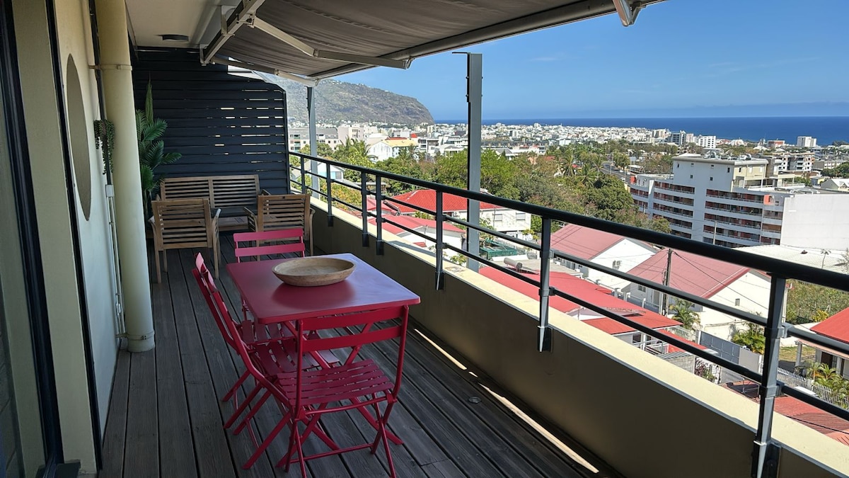 Welcome to this spacious and unique 65m2 duplex apartment. Perched on the 11th and top floor of the highest residence in the north of the island, you'll enjoy a panoramic sea & mountain view from one of the two balconies. Located 13 minutes from the airport, on Blvd Sud (central axis), it will be ideal for your business or tourist stopovers. *Home cinema in room with balcony *Swimming pool in residence *Private parking *Air-conditioning *Netflix *Fiber