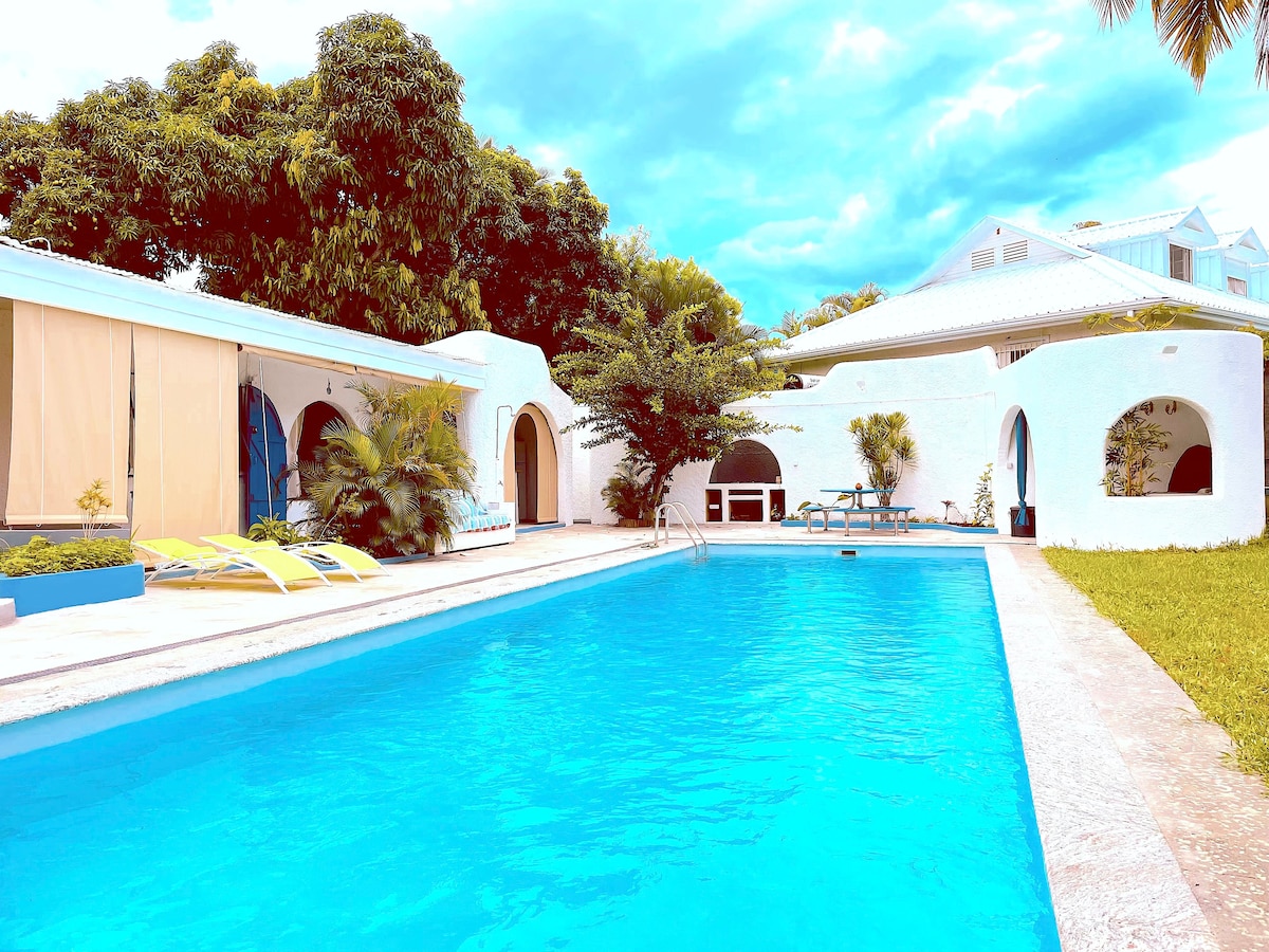 Bienvenue à la Grande-Montée où il ne pleut pas si souvent qu'on le dit. Idéalement placée à 10 minutes de l'aéroport, à 2 minutes de toutes les commodités, cette villa entièrement équipée vous accueille pour un séjour agréable en famille. Toutes les chambres sont spacieuses et climatisées. A l'extérieur, le jardin arboré et clôturé vous offre un havre de paix et de douceur. Amateur de Barbecue, vous ne serez pas déçu. Nous vous souhaitons un agréable séjour!