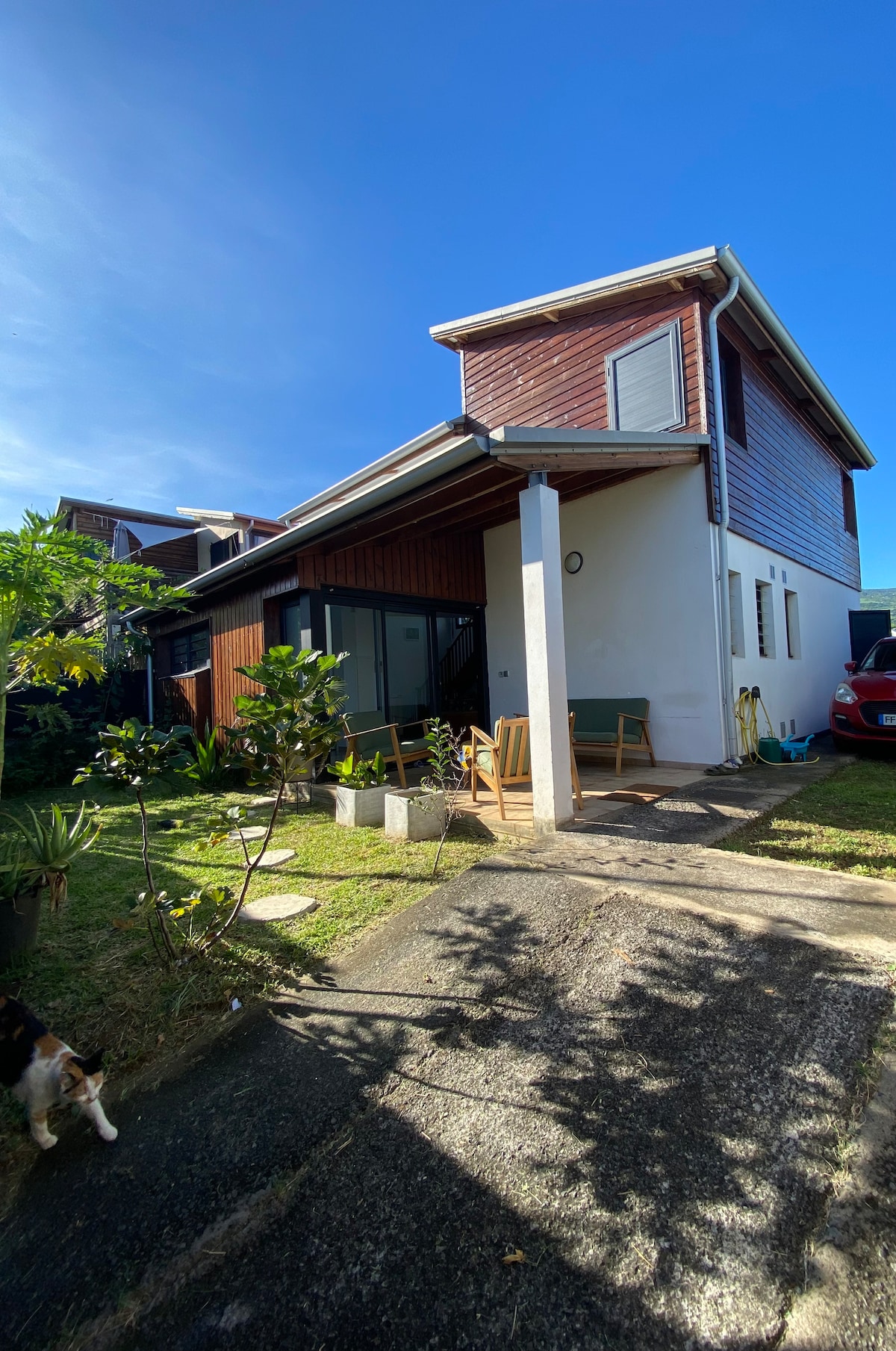 Charmante maison de 110 m2 située à ST DENIS à 5 min de l'aéroport. A 5 min de toutes commodités : bus, boulangerie, pharmacie, centre commercial, cinéma, épiceries, restaurants... L'aéroport se situe à 5 min en voiture. Le centre-ville et le Barachois se situent à 15 min en voiture. Les plages se situent à 35 min en voiture. Terrasse ouverte sur un jardin sans vis-à-vis, grande cuisine équipée, salon climatisé, coin bureau, 2 chambres, 2 WC, 2 salles de bain, parking, portail électrique.