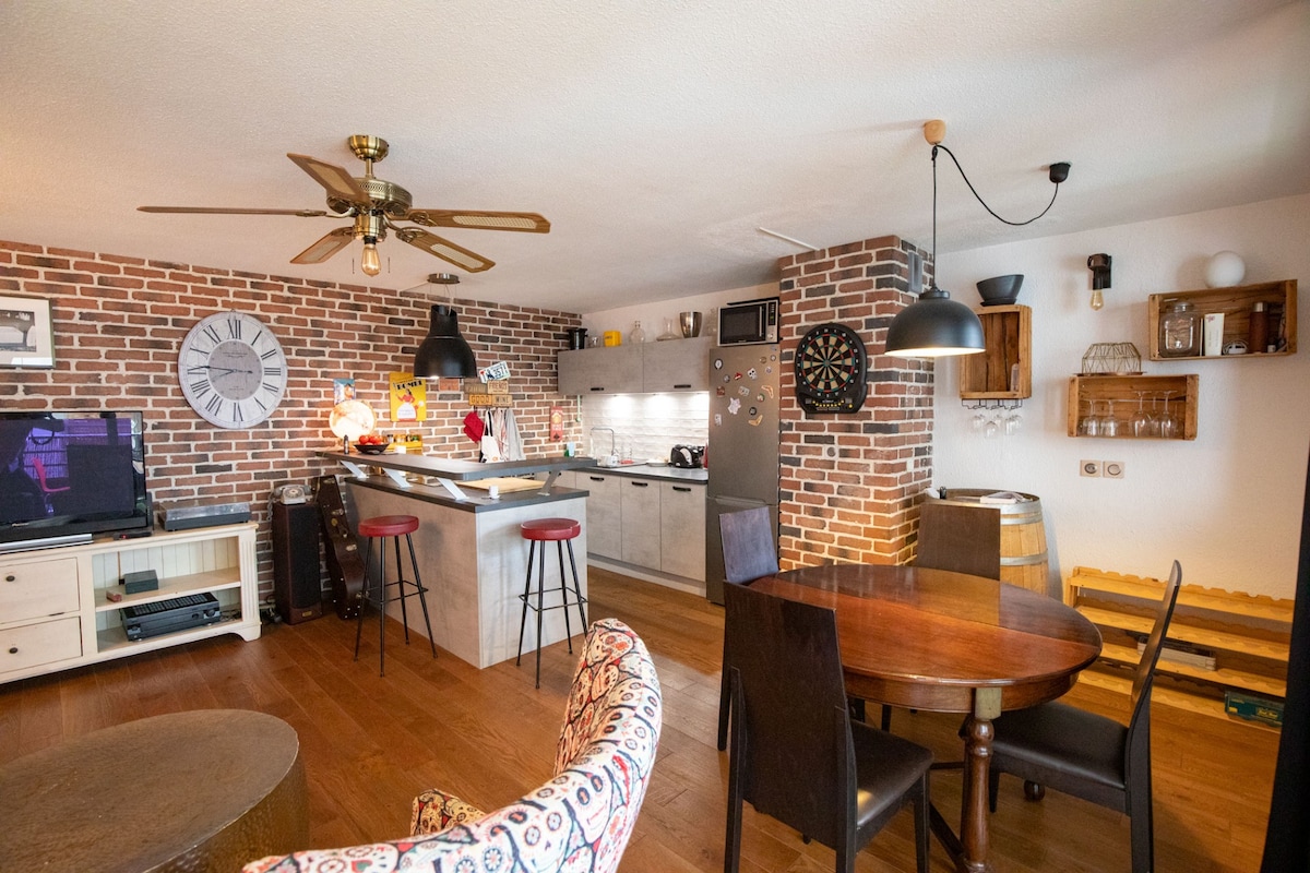 Nous serons heureux de vous accueillir dans cet appartement cosy, indépendant, mitoyen de notre maison située à 25 min du centre de Lyon et aux portes du Beaujolais. Vous bénéficierez de tout le confort d'un appartement tout neuf et très bien équipé mais aussi du grand jardin de notre maison avec vue sur les Monts d'or et aux beaux jours de la piscine chauffée. Une cuisine ouverte sur le salon, une chambre et une mezzanine avec un lit double composent l'appartement Parking dans propriété fermée