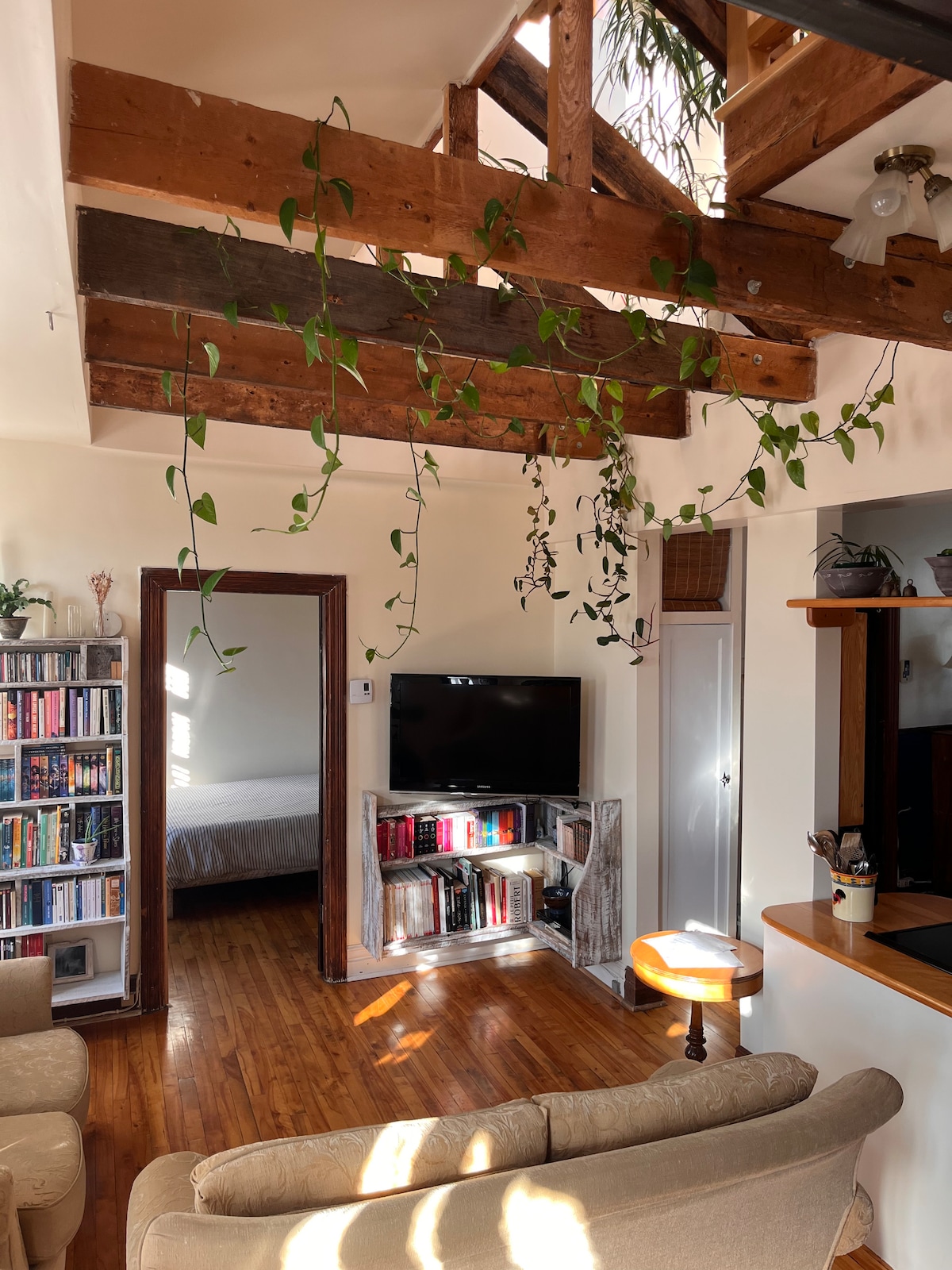 Loft de 640 p.c. 100% privé & tout équipé! TV, WiFi, Cafés/thés/lait, literie haut de gamme, salle de bain complète. Convient à une clientèle très calme. SVP voir toutes les caractéristiques au bas. Parking inclus (partagé en cas de déneigement). Animaux interdits. L’unité est entre l’arrêt de bus RTC Brown et Belvédère. *Sous-sol* Maison de 1926. Entrée: après 16h Départ: avant 10h (flexible)