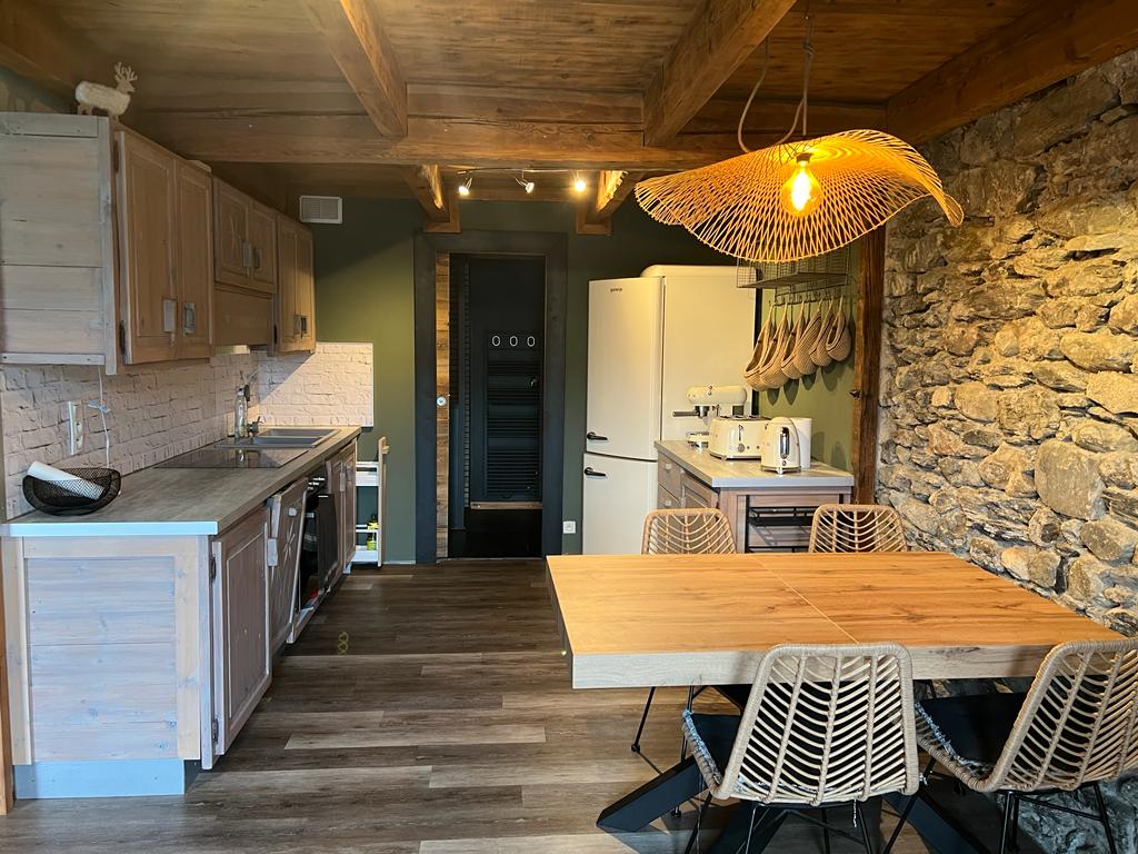 Logement spacieux de 100m2 environ décoré avec soin, avec jardin privatif, parking et accès à un bain nordique traditionnel (sur réservation pour mise en chauffe). Un bain nordique par séjour offert. Bains supplémentaires en sus Mon logement est proche des restaurants, des activités adaptées aux familles (pistes de ski fond et alpin, chemin de randonnée et VTT) et des transports en commun. Mon logement est parfait pour les couples, les voyageurs en solo, les voyageurs d'affaires et les familles.