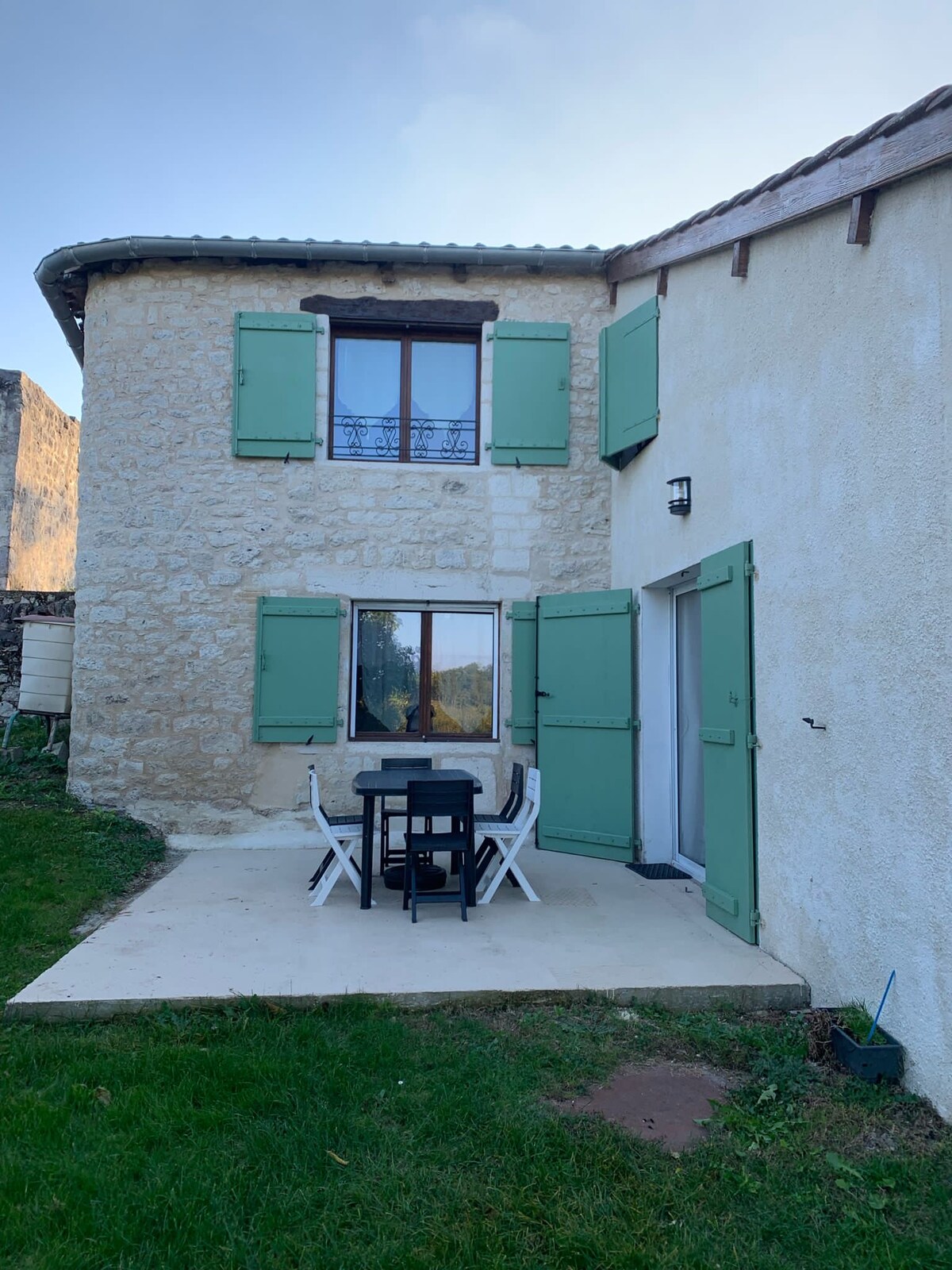 Petite maison de 20 m2 , en pleine campagne. Restaurée avec soin, elle comprend un séjour équipé d'un canapé lit 2 places, d'une kitchenette et d'une salle de bain chaleureuse type chalet. Elle dispose d'un poêle à bois. Elle profite d'un espace ombragé équipé d'un barbecue et d'un salon de jardin et d'un espace qui s'ouvre sur un large paysage de campagne. Un ruisseau longeant la praire, des chemins de randonnées et le village médiéval à proximité invitent à la balade .