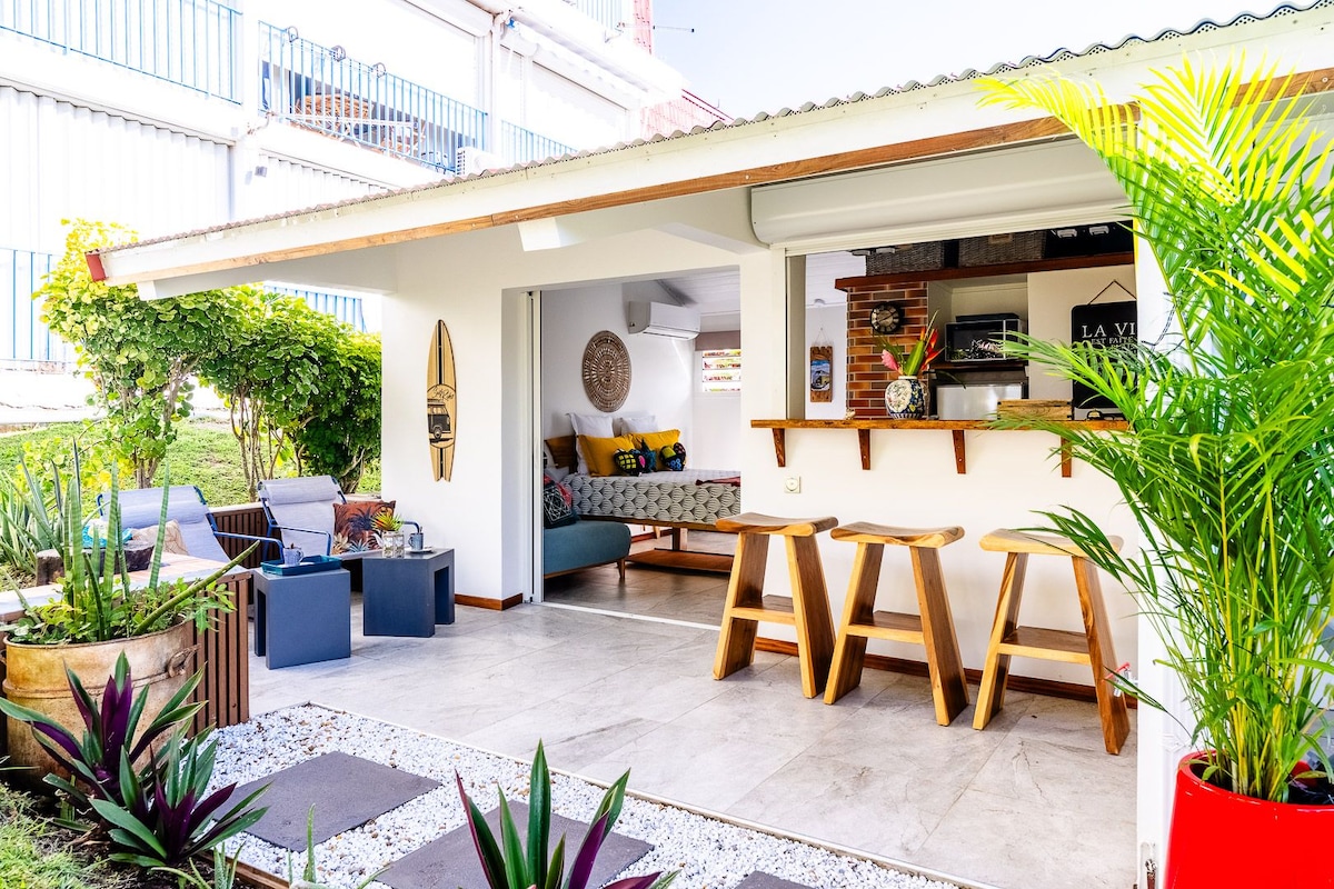 Dans le sud de la Martinique à moins de 2 min à pied de la plage de gros-raisin à Sainte-Luce, venez profiter en famille ou entre amis de notre nouveau logement tout équipé pouvant accueillir jusqu'à 4 personnes. Vous serez séduit par sa terrasse et piscine privative ensoleillée toute la journée. Secteur calme, proche de toutes commodités: restaurants, supermarché, pharmacie + bourg à moins de 5 min en voiture. Parcours pour les sportifs (runners ou marcheurs) de 6 km environ le long des plages.