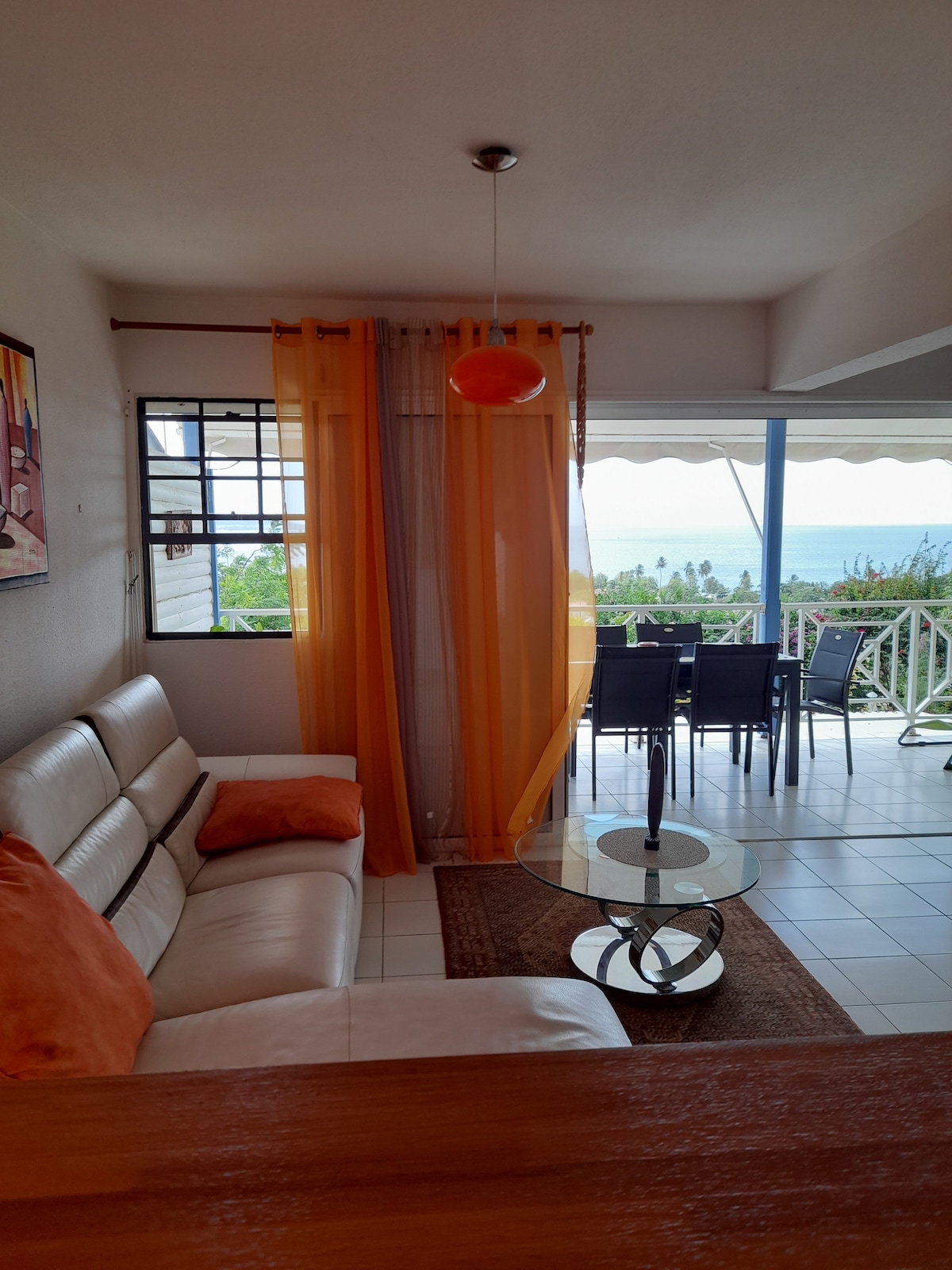 Très Bel appartement 3 pièces , 65 m² au sol, occupant une position centrale dans un village de vacances. Situé en haut d'un batiment dans le style local, la grande varangue vous offrira une magnifique vue mer coté rocher du Diamant et l'espace piscine. Vous pourrez profiter à pied, de tout ce que propose le Village (supérette, restaurants, Bar, jeux, centre de plongée, Base nautique, piscine de plus de 650 m² et aussi un accès direct à la plage). L'appartement est climatisé et non fumeur.