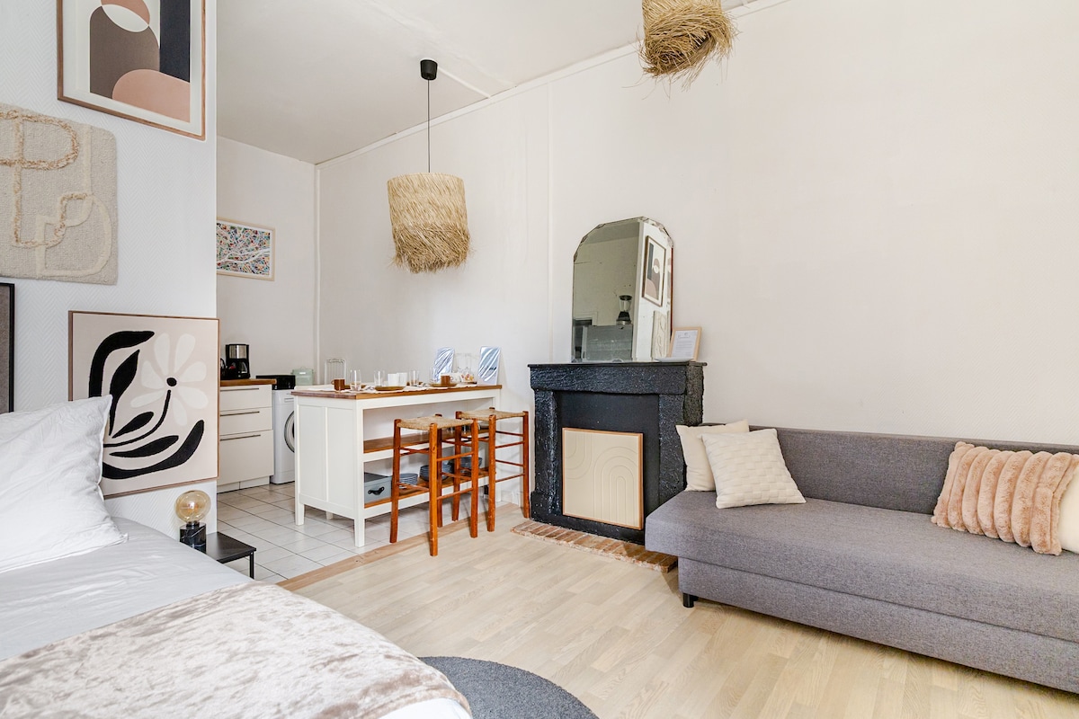 Charmant appartement de 30 m², idéalement situé au pied du tramway (L1). Grâce à cette ligne, rejoignez en quelques minutes directement la gare, le centre-ville, les Machines de l'Île, la Beaujoire, le CHU, etc. Tous les commerces nécessaires sont à proximité. Fraîchement rénové, il dispose d'une pièce de vie - salon avec canapé-lit, d'une cuisine équipée, d'une chambre avec lit 160x200 et d'une salle de bain moderne. Stationnement facile à proximité (parking gratuit ou dans la rue)