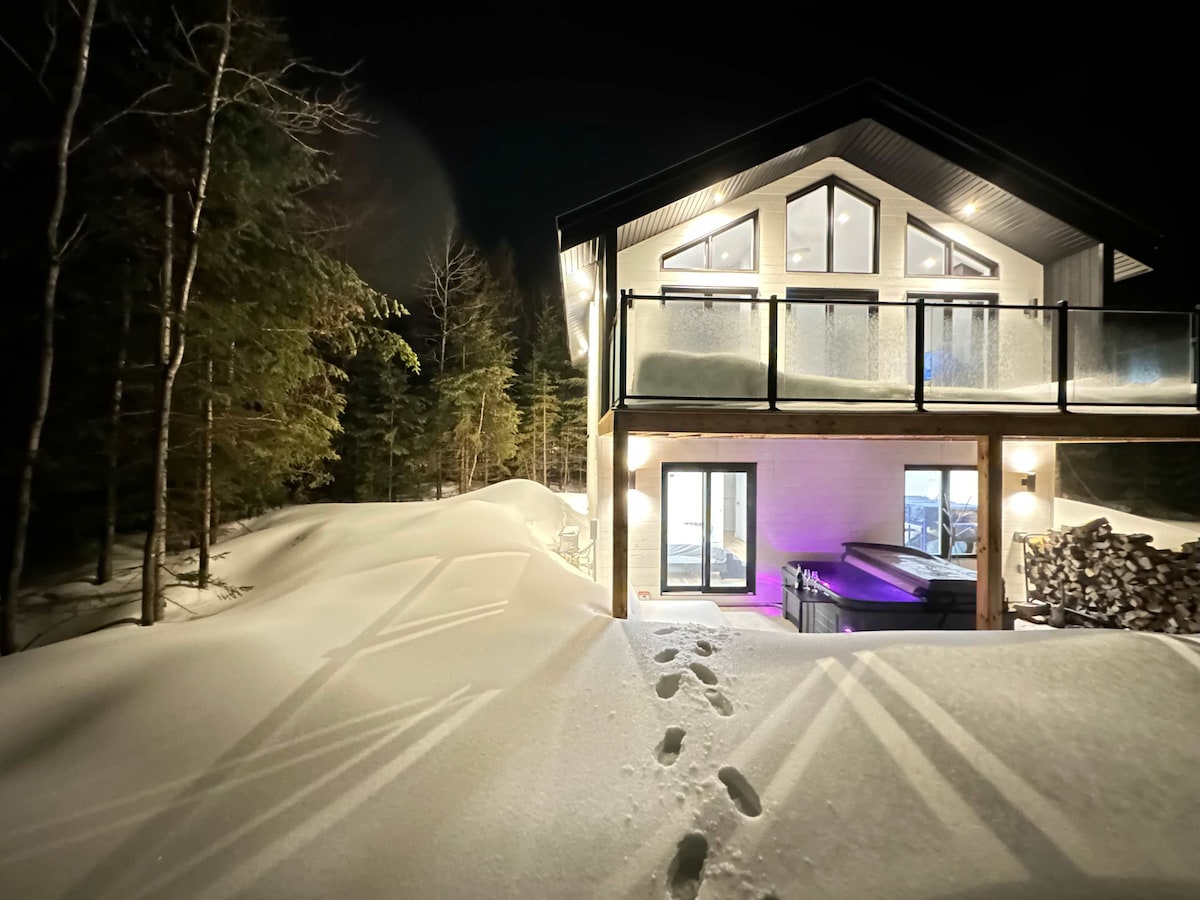 Unique haven of peace with breathtaking views! Located on a huge 100-acre estate with no nearby neighbors! Peace and tranquility guaranteed. Dogs accepted on condition until June 15. Dogs not allowed in high season. Cross-country skiing, snowshoeing and hiking trails on the doorstep. Spa with breathtaking views! In winter, a 4x4 vehicle is required to drive up the road to the chalet. THERE ARE CAMERAS ON THE PROPERTY Dogs welcome before June 15th + fees (no dogs in pick season). CITQ #30336