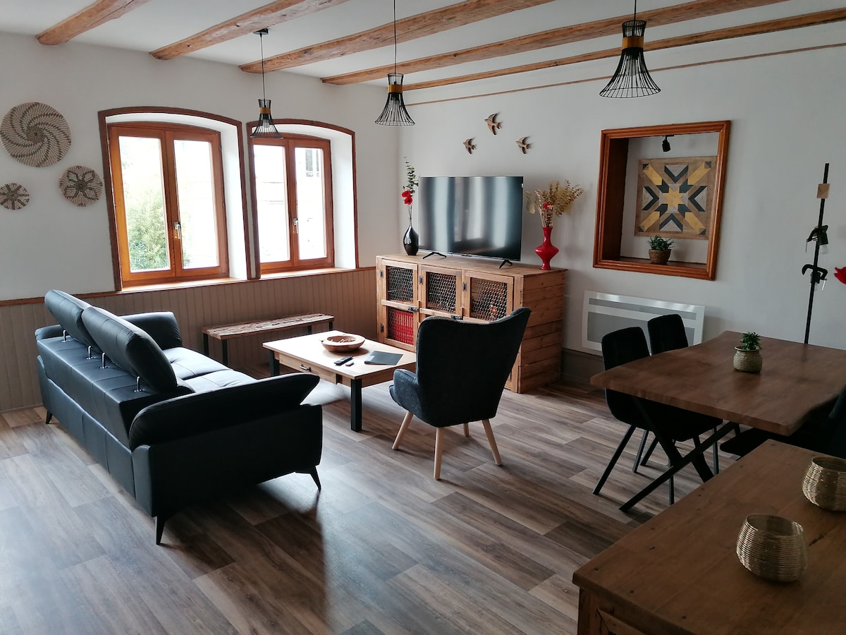 Appartement tout équipé et indépendant, remis à neuf avec soin, au rez-de-chaussée de notre maison. Terrasse indépendante, qui offre une vue panoramique sur les montagnes. Le logement dispose d'une cuisine équipée, d'un lit queen size (160*200). Situé au cœur du Pays Welche, entre Kaysersberg (7km) et la station de ski du Lac Blanc (10km), à proximité de nombreux chemins de rando et circuits VTT, à seulement 16km de Colmar. Commerces à proximité(4km), dont produits locaux (2km).