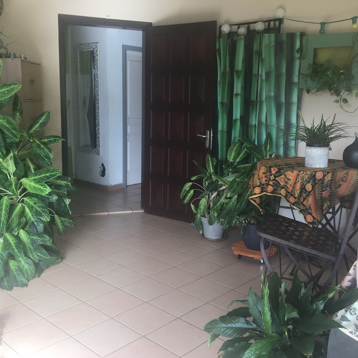 Vous séjournerez dans la maison que nous habitons toute l'année, disponible pour vous durant nos vacances, d'où une ambiance familiale. Située dans une impasse très calme, sur les hauteurs de St-Denis. 15' de l'aéroport ou du centre ville et 45' des plages. Elle nous semble idéale pour une famille, ou 2 couples. Couchages: lit 1m60 (+lit bébé disponible) / lit 120 / lit clic-clac 140cm. Un pied à terre sympa, qui permet de pouvoir rayonner entre mer et montagne, entre "est" et "ouest".