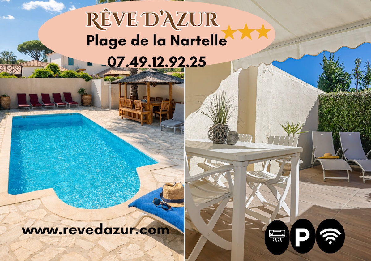 📍 À 2 minutes à pied de la plage de la Nartelle 🏊 Piscine partagée ouverte du 1 Mai au 30 Septembre de 9h à 20h 🍴 Barbecue commun 🏓 Ping-pong et terrain de pétanque ❄️ Climatisation 📶 Wi-Fi inclus 🌸 Séjour au calme 🚗 Parking privatif véhicule standard ( pas d'utilitaire) ✨ Linge de lit et serviettes inclus 🚫 Règles importantes 🌿 Frais de ménage non inclus le logement doit être rendu propre 🚷 Visites extérieures non autorisées 🎉 Fêtes et évènements interdits 🐾 Animaux non acceptés