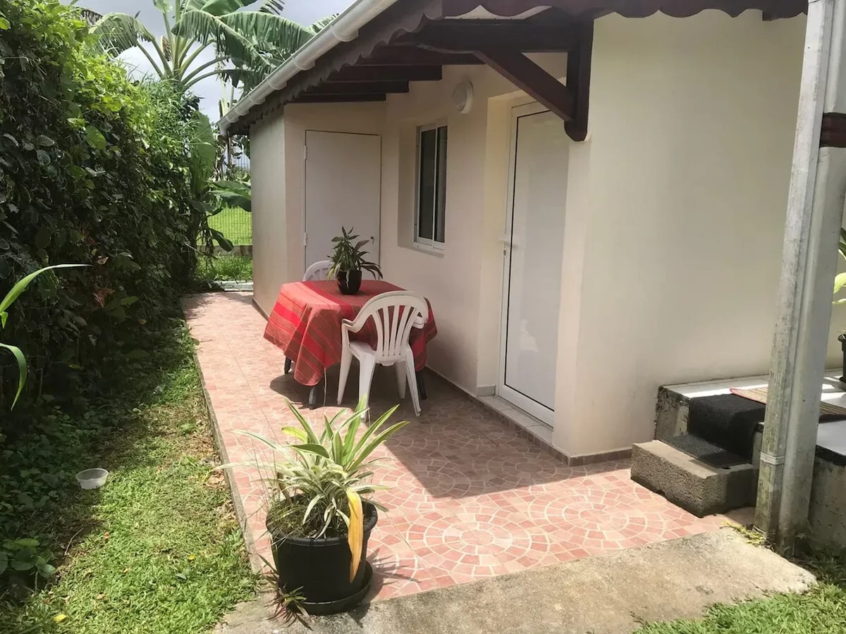 Apparemment discret tout confort est situé juste à l'entrée de Sainte Rose après le pont de la Boucan. Il est très bien équipé (cuisine entièrement aménagée avec four, micro onde, réfrigérateur, congélateur, télé, wifi...) vous ne manquerez de rien. Il peut accueillir 2 adultes (enfants possible). L' appartement est climatisé. La literie est fournis ainsi que les serviettes et draps de bain.