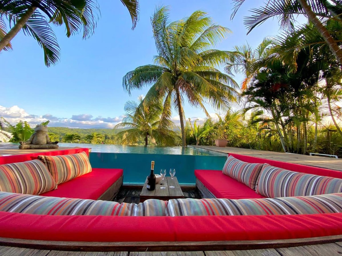 Coup de coeur de nos visiteurs, le T4 Balisier est l'atout charme de notre domaine 3 étoiles Le Berceau de Moïse. Duplex classe, charmant et bien situé, il vous offre la vue sur les montages, la piscine et la verdure qui encercle la propriété. C'est le logement idéal pour des vacances exceptionnelles entre amis ou en famille.