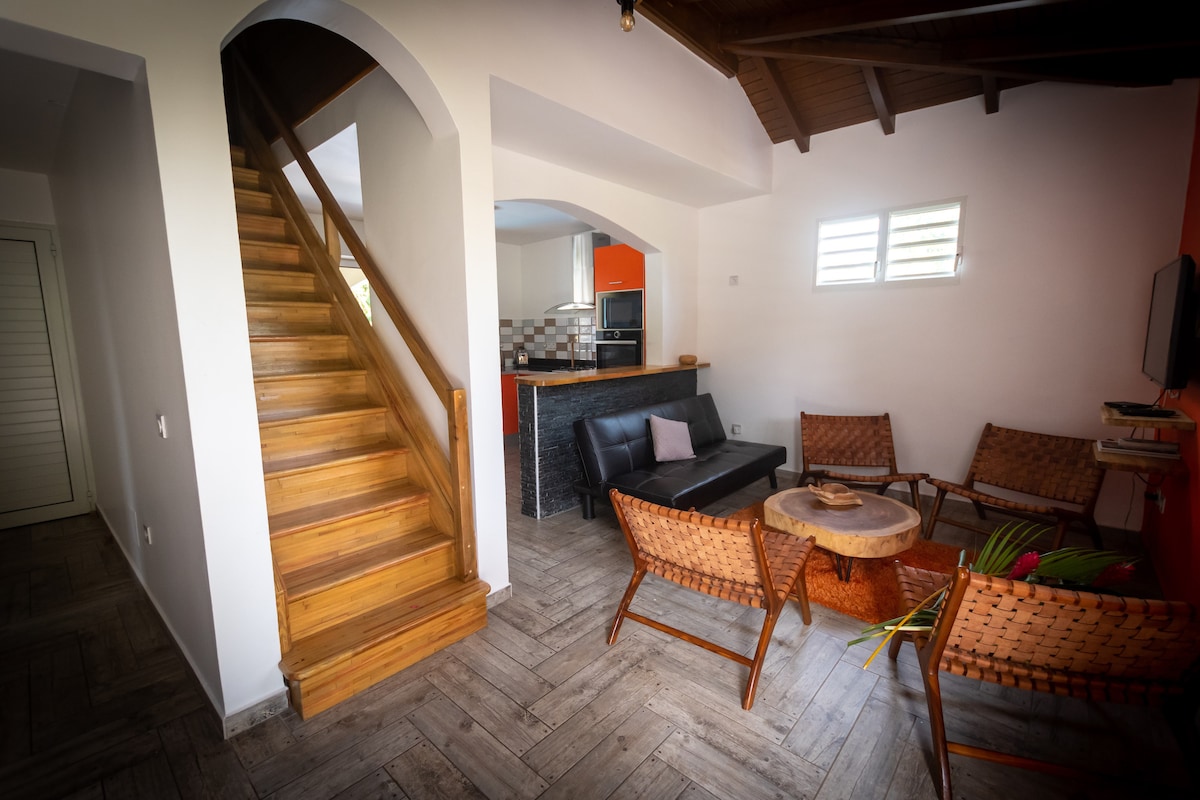 nichée dans un jardin fleuri et calme venez découvrir Lasainterosienne . Bungalows accueillant avec sa cuisine équipée et tout sont confort vous fera passer des vacances au paradis de rève qui est la Guadeloupe : prochaine destination le papillon .