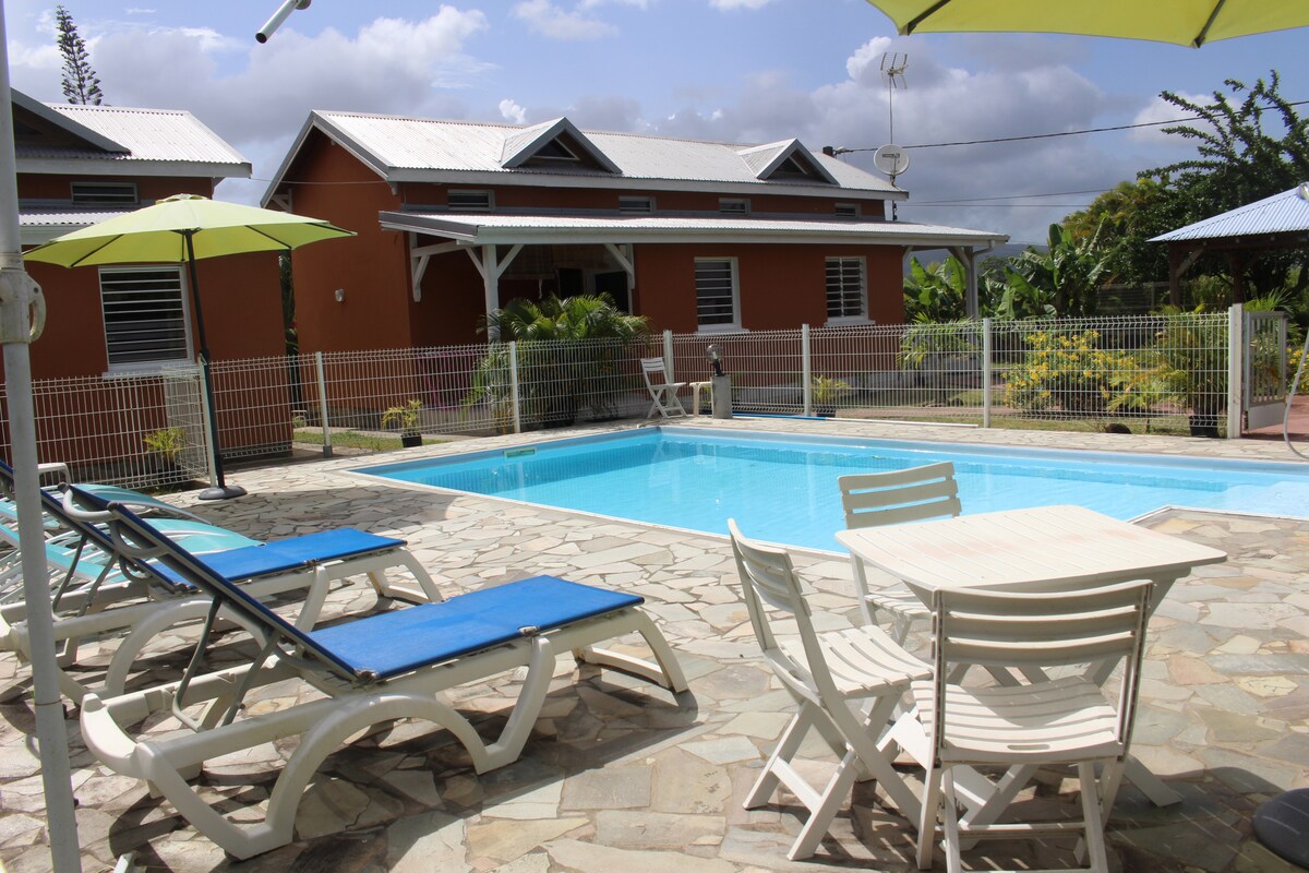 Faites une pause et détendez-vous dans cette oasis paisible. BUNGAILLOU allie charme et fonctionnalité : 1 chambre,1 canapé convertible, télévision , cuisine entièrement équipée,barbecue,piscine et parking privés avec entrée indépendante. Situé au Lamentin (parfaitement situé à mi chemin entre la Grande Terre et la Basse Terre ), vous pourrez aisément découvrir un tourisme vert (Basse Terre ) et à la fois un tourisme balnéaire (Grande Terre) ..
