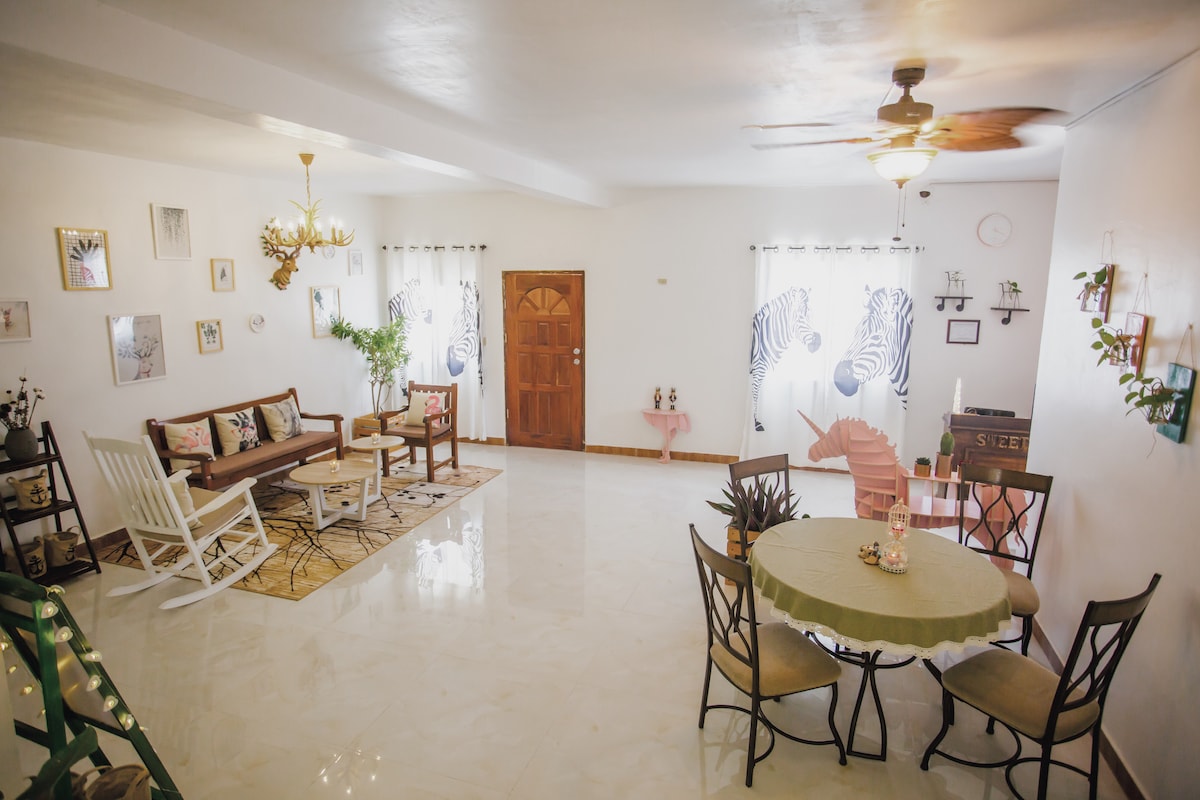 Sweet Dave was established in 2017 and organized a homestay in early 2018. It was designed by the owner Dave. The appearance of the interior decoration items is new. Located in the southwestern of Saipan, it is adjacent to the landmark Mount Carmel Cathedral on the island and covers an area of 214 square meters and a living room area of 98 square meters. Sweet Dave成立于2017年,18年初筹办民宿,由房主Dave一手设计建造而成,内饰摆件用品外观均属新品。位于塞班岛西南商业区,紧邻岛上地标卡梅尔山大教堂,占地面积214平方米,客厅面积98平方米。整体装修格调简约森系搭配美式家具,营造一种复古风和现代ins风相结合的温馨氛围。