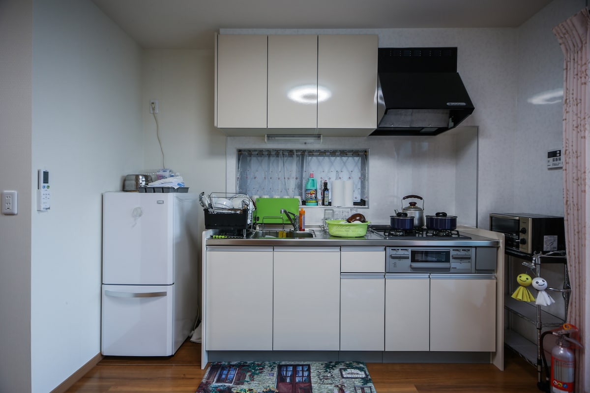 Renovated clean house, brandnew bathtub, brandnew kitchen, toaster, microwave,auto-wash and dry machine,,,all brandnew!!! Each room has a key and nice sun shining. ご予約いただいた全てのお客様が快適に過ごせますように思っております。何か質問等ありましたらお気軽にお声掛けください。 当ハウスはご予約頂いた人数のみご利用可能です 庭、駐車場2台分付きの 5DK(一部屋は使用不可)まるまる一軒家です。大人数対応可能です。 リフォームしたばかりのきれいな家です。キッチン、バス、トイレなどすべて新品です。 完全に乾くまで乾燥ができる自動洗濯乾燥機、洗面台は 三面鏡、シャワー、大型シンクです。 ライブDVD/BD等 お持ち頂ければ 大画面で アリーナ気分を体感できます。 (You tubeも 高画質大画面で見ることができます) 日当たり良好。自転車を2台用意しております
